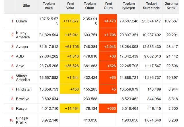 10 ŞUBAT ÇARŞAMBA DÜNYA KORONAVİRÜS TABLOSU!