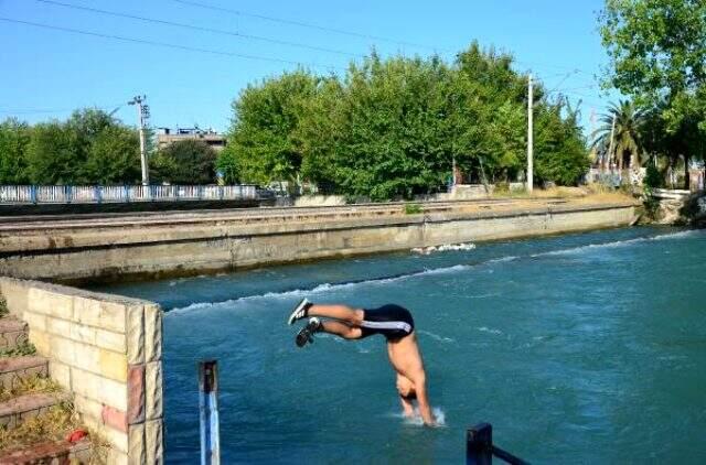 Kanalda yüzen bir diğer genç Mustafa Tok (14) ise virüs nedeniyle havuzların kapalı olduğunu öne sürerek, “Burada da yüzmek yasak ancak yasaklar çiğnenmek içindir” diye konuştu. Serhat Güler (9) de serinlemek için en iyi yerin kanallar olduğunu ileri sürerek, “Burası buz üzere. Tehlikeli olsa demir koyarlardı” sözlerini kullandı.