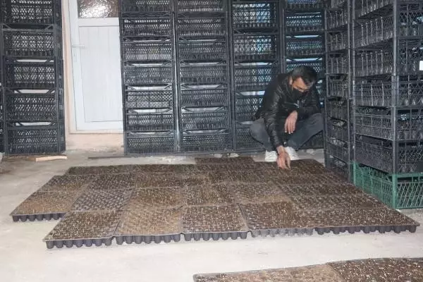 Gerekli gereçleri temin eden Salim, yüzlerce plastik zerzevat kasası alıp, çalışmalara başladı. Fidelerin soğuk havada ziyan görmemesi için de odalara soba kuran Salim, 3 ayda yaklaşık 250 bin domates, biber, patlıcan ve lahana fidesi yetiştirdi.